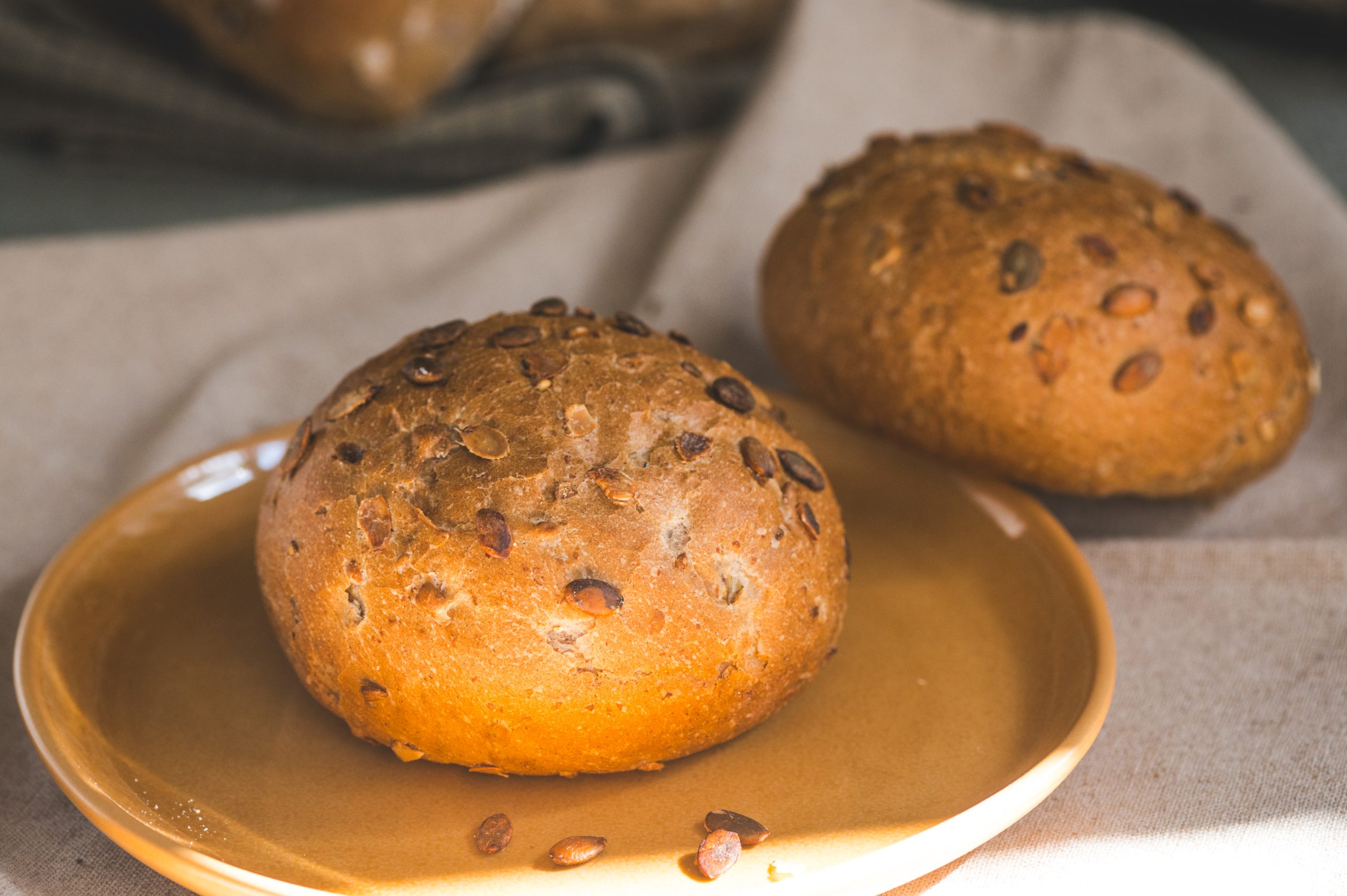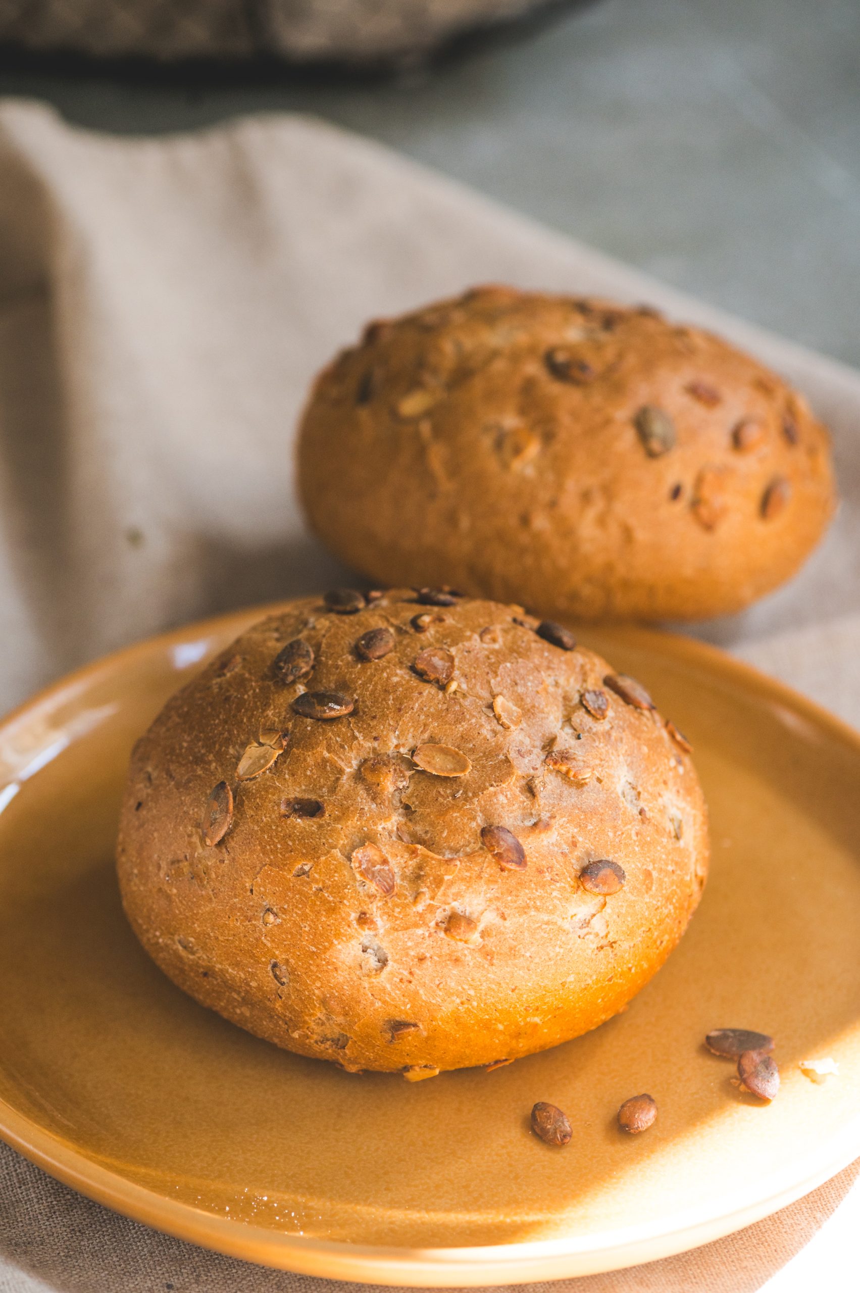 Oto bułka pszenna, której charakter podkreśla chrupiąca posypka z aromatycznych pestek dyni.